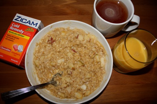 Breakfast was boring old Kashi Heart to Heart cereal with almond milk and a side of light cranberry juice.