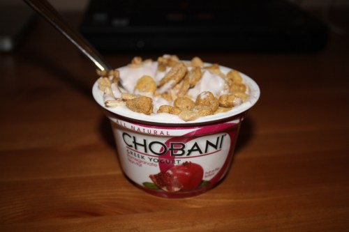 Afternoon snacks were walnuts and raisins and a strawberry Yoplait yogurt with granola. I was really missing my Greek yogurt. Darn you bad Oikos yogurt!